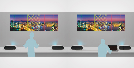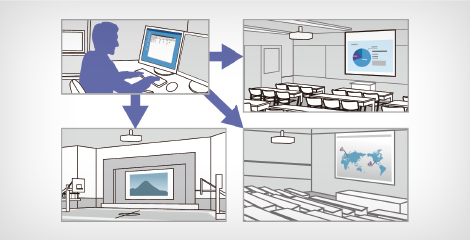 您可以在同一屏幕上同时投影显示出来自4个设备的内容。例如在一场视频会议中,屏幕内可同时放映多方参与者影像和会议材料。爱普生激光投影机带来的大画面投影使沟通更高效。