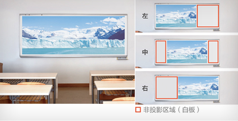 CB-L630SU支持16:6宽屏模式,最大屏幕尺寸可达452英寸,并且可以通过遥控器调整屏幕位置,这样可以留出非投影区域,用户可以在无影像区域进行板书书写。