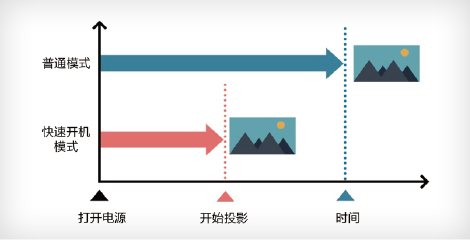 新增快速开机模式大大缩减开机时间,在5秒以内就可以完成画面投影,投影机使用无需等待。
