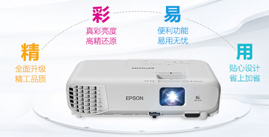 爱普生3LCD液晶投影系统投射全彩影像,呈现更美画质3300流明白色亮度/色彩亮度*1*2,搭配 15000:1对比度*1*2,用更优质的清晰度、锐利度表现不同色彩,满足更高要求。